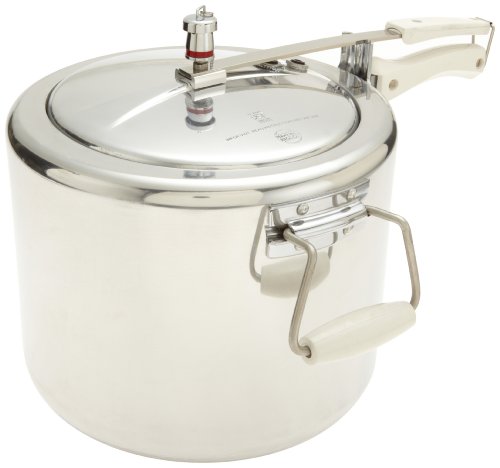 This is an aluminum 18.0 litre pressure cooker/canner with a whistling pressure regulatorAvailable at Amazon Check Price Now!
